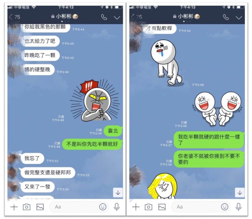 好東西就是要跟好朋友分享,為了測試結果更準確,我也分了幾粒給好朋友體驗。從LINE的對話紀錄看來,美國黑金效果確實很不錯。哈哈哈~我那個朋友才吃了一粒,竟然搞到要跟老婆來兩發,才能稍稍平息老二的怒火。(之後朋友也推薦我一款「日本藤素」,效果也是滿不錯的)