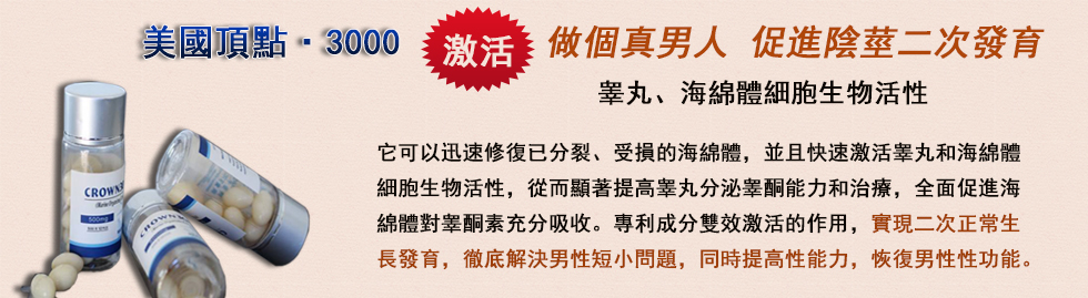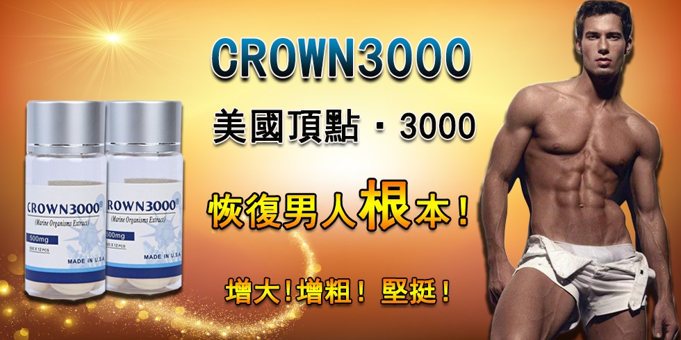 4.CROWN3000能有效改善男性性功能障礙,增加海綿體的強度,加強勃起的持久性,提高運動能量,增強身體的爆發力,對於男性雄激素不足所引起的性欲的性欲減退,尤其對舉而不堅,堅而不硬,挺而不久特具功效。正常的男士服食可提高性能力,沒有副作用。
