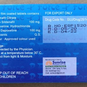 對於許多男人,勃起功能障礙、早洩攜起手來。這可能會導致很多困難,更不要說有不便採取兩種不同的藥片每壹天。因此,研究人員想出了完美的解抉方案必利吉P-force:Extra Super P-Force(西地那非100mg+達泊西汀100mg)。